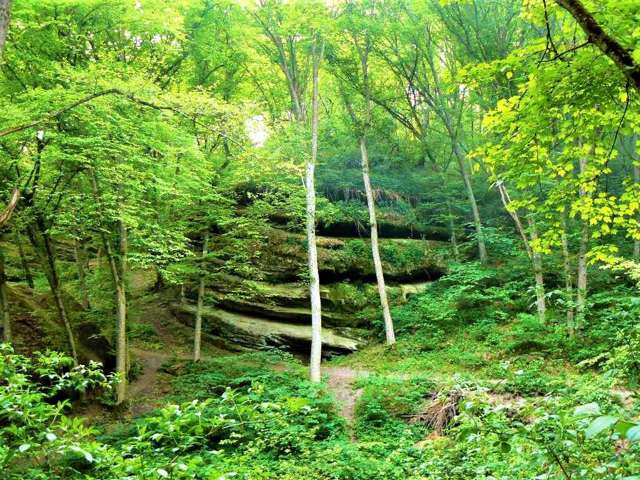 Here, sandstone rocks form picturesque landscapes in the middle of a hornbeam forest. The most impressive are the "Mushroom", "Baran", and "Vysiachka" rocks.