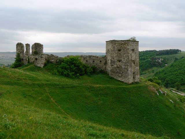 A quadrangular fortress with three corner towers on three sides was protected by the steep slopes of the mountain. The weakly defended northern side was separated from the plateau by a moat and rampart, as well as a powerful fortification complex with two towers, one of which was the entrance. In 1648, the Cossack troops of Maksym Kryvonos expelled the Polish garrison from the castle, and it was also captured twice by the Turks.