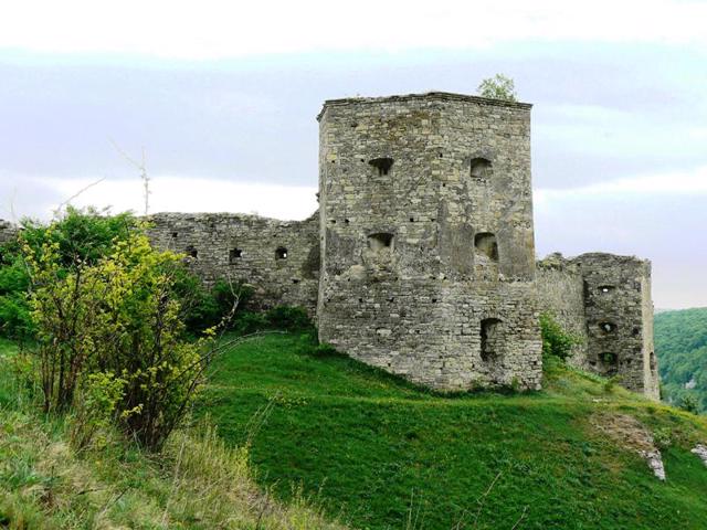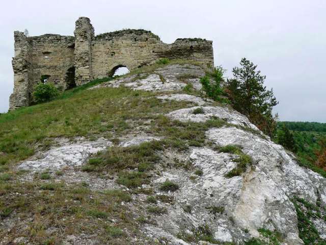Руїни оборонного замку, що добре збереглися, височіють на горі Стрілка над Збручем.
