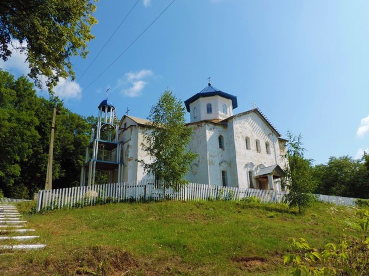 The large stone Cathedral of the Assumption is located on the terrace above the village of Mezhyrich, at the foot of the plateau of the high right bank of the Psel River.