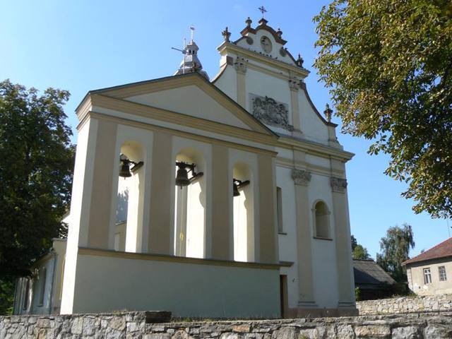 The stone building in the Baroque style was erected in the 19th century on the site of the first wooden church, founded in 1478. The facade is decorated with the coat of arms of the Lyantskoronsky family.