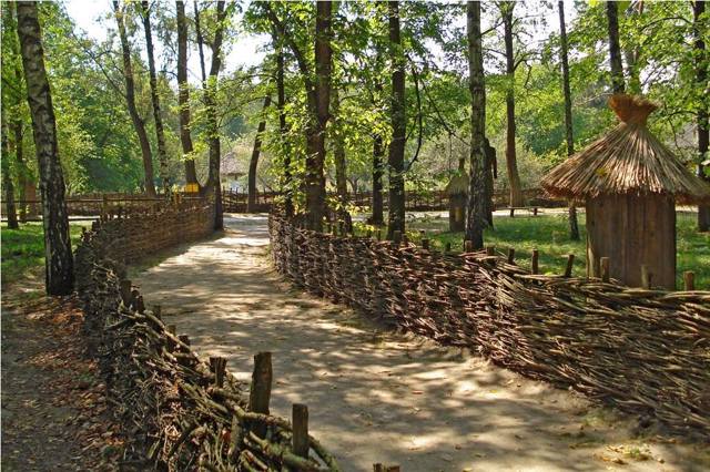 Забудова музею імітує планування класичного українського села з майданом посередині. На мальовничій парковій території площею 25 гектарів на околиці міста Переяслав розташовано близько 300 експонатів. Майже половина з них – це автентичні дерев'яні храми, селянські хати й вітряки XVII-XIX століть, перевезені сюди з різних куточків регіону. 20 селянських дворів із житловими та господарс ...