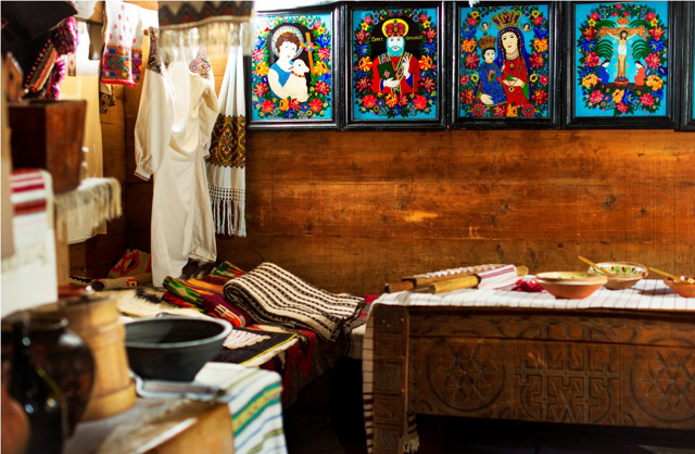 Visitors are greeted by the active church of Saint Demetrius of Thessalonica, from which the creation of the complex began. During the tour, you can view the authentic interiors of six ancient houses, transported from different regions of Ukraine: Hutsul region, South, Podillya, Polissya, Middle Dnipro region and Slobozhansky region. And also visit a pottery workshop, a forge and a distillery, a bakery, etc.
