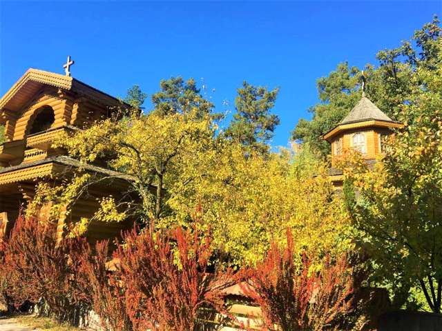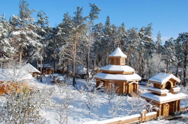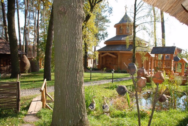 The wooden temple of the holy Great Martyr Demetrius of Thessalonica is the central building of the ethnographic complex "Ukrainian Village".