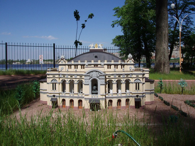 Collected in the park area on the banks of the Dnipro, on the territory of the Hydropark. The exhibition opened in 2006 as the park "Kyiv in miniature". About 50 models of famous Kyiv buildings, monuments and structures on a scale of 1:33 have been collected on an area of 1.8 hectares. All models are made of modern synthetic material, but require regular maintenance due to environmental exposure.