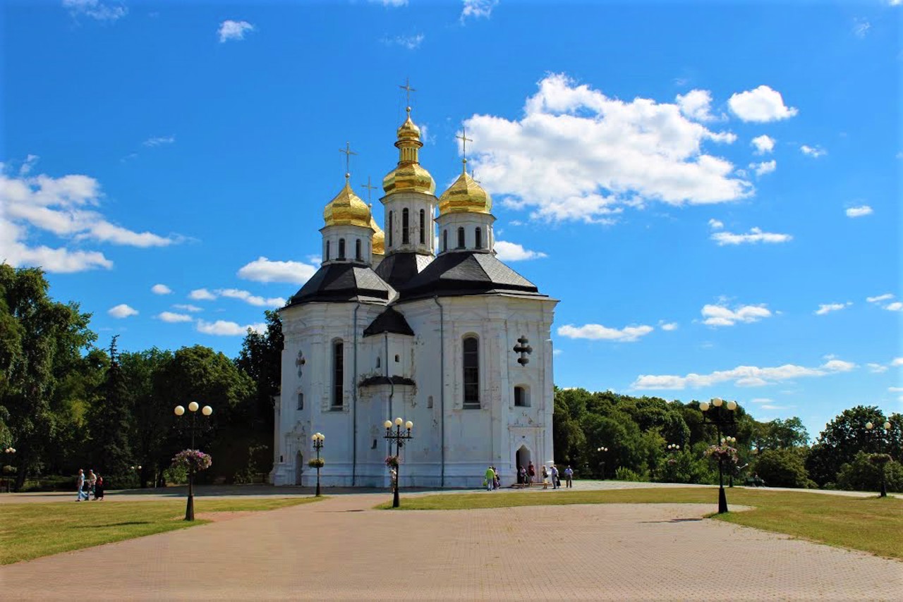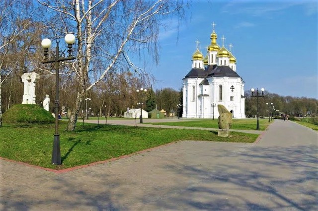 The Cathedral of the Holy Great Martyr Catherine solemnly greets everyone who enters Chernihiv from the Kyiv side, it is considered a symbol of the city. It is located on the opposite hill from Dytynets, on the Alley of Heroes.