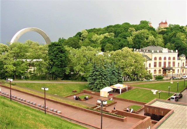 On the Dnipro slope of Khreshchaty Park, behind the Philharmonic, in 1982, in honor of the 60th anniversary of the creation of the USSR, a sculptural composition was installed, consisting of the Arch of Friendship of Peoples and two sculptural groups under it. In 2022, during the full-scale Russian invasion of Ukraine, the sculptural part of the monument was dismantled, and the arch was renamed the Arch of Freedom of the Ukrainian People.