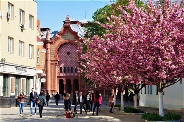 Sakura is recognized as a tourist card of Uzhhorod. The ornamental Japanese cherry was brought here in 1923 from Vienna, and now it grows all over the city. But the first sakura alley was planted along Braschaykiv Street and on the adjacent streets - in the so-called Czech quarters, which were built in the 1920s in the style of interwar modernism. In the spring, hundreds of sakura trees bloom here in an incredibly lush pink and white color. This fascinating sight attracts thousands of tourists to Uzhhoro ...