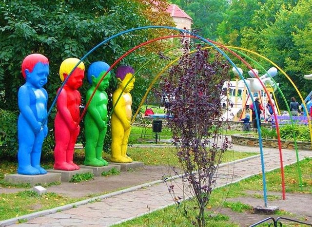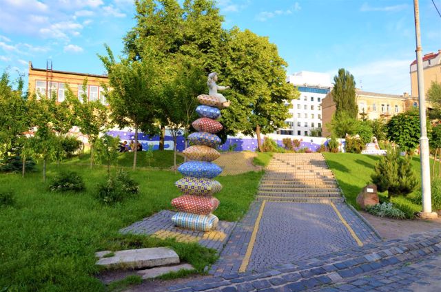 Since 2009, the sculptor Kostyantyn Skretutskyi began to decorate Landscape Alley with fairy-tale characters: centipede cats, fountain elephants and giant sparrows, etc. The collection is constantly replenished with new sculptures.