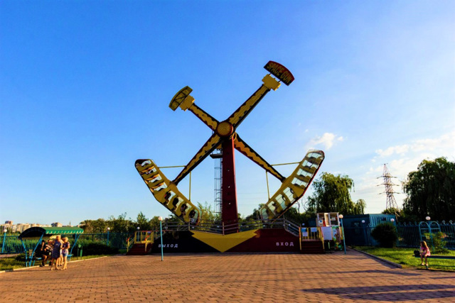 In the "Extreme Park" there are 14 attractions, including extreme ones: "Falling Tower", "Wild Train", "Ferris wheel", chain carousel, "Wasp" swing, "Looping", etc. The most popular attraction is "Autodrome".