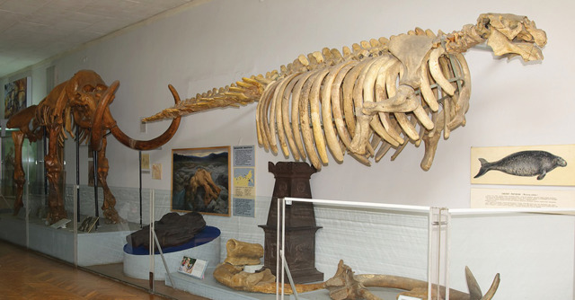 A prominent place is occupied by a complex of dioramas - about 30 landscape expositions and biogroups. In particular, in the paleontological exhibition you can see the dioramas "Paleozoic Sea", "Northern Black Sea Coast at the end of the Miocene" and "The site of primitive man in the Kyik-Koba cave", skeletons of a Deinatherium, a mammoth, a hairy rhinoceros and a giant deer, reconstructions of settlements from Paleolithic sites in Mezyn and Mezhyrich.