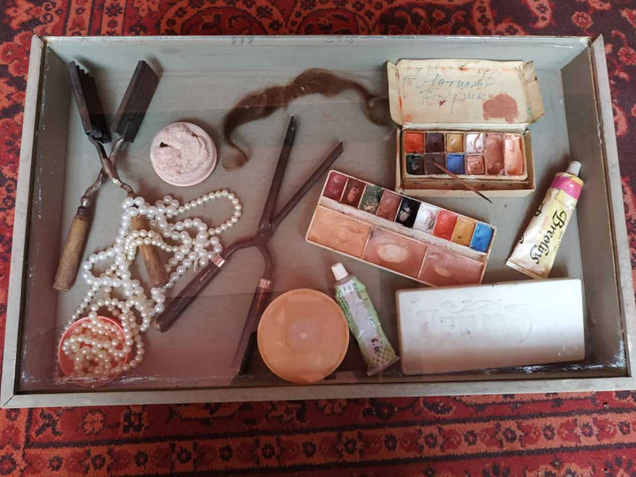 Представлені фотографії, живописні та графічні картини, ляльки, афіші, ескізи декорацій та костюмів, макети декорацій, театральні костюми, меблі тощо.