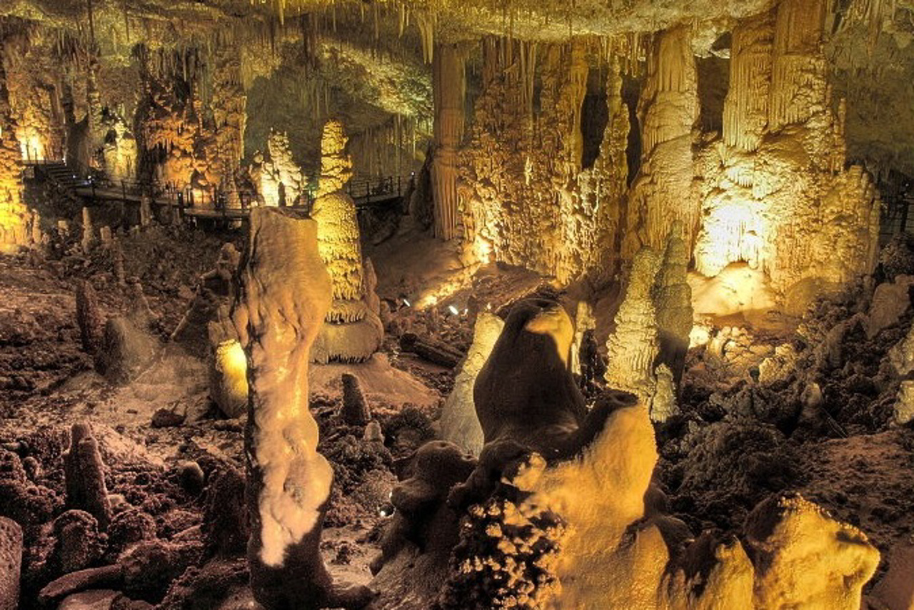 The cave has several halls connected by passages. The height of the vault of the largest and most beautiful hall reaches 25 meters. The walls are decorated wi ...