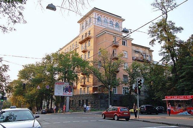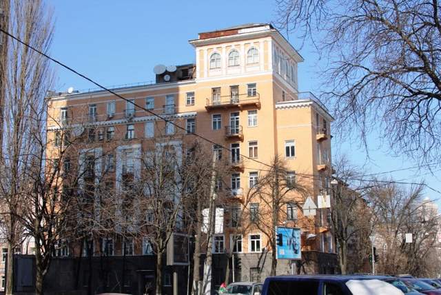 The building in the style of constructivism and classicism, designed by Vasyl Krychevskyi, was built in 1934 by the housing cooperative of the Union of Writers. At different times, about 130 writers and other artists lived here, including Oles Honchar, Pavlo Tychyna, Maksym Rylskyi, Volodymyr Sosyura, Mykola Bazhan, Oleksandr Korniychuk, Andriy Malyshko, Ostap Vyshnya and others. Oles Honchar's "Cathedral" was created here and Andriy Malyshko's "Song about a Towel& ...
