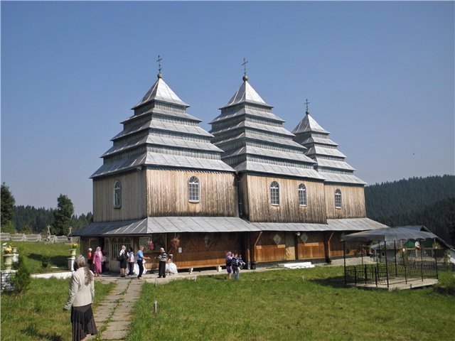 The wooden church of the Nativity of the Holy Virgin was built in Rozluch in 1876 by master Havryla Roman in a typical Boyki style.