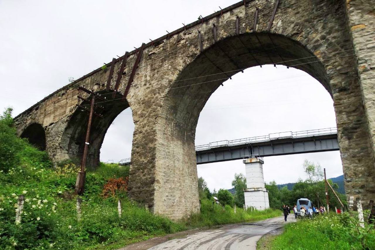 It is one of two large arched bridges in Vorokhta (the Yaremche-Verkhovyna highway passes under the second), it is considered one of the longest stone railway bridges in Europe.