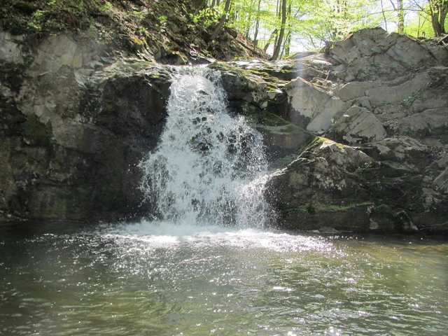 The waterfall with a height of 4 meters was formed at the place where the Rushir River breaks through the fold of Mehura and Tarnitsa.