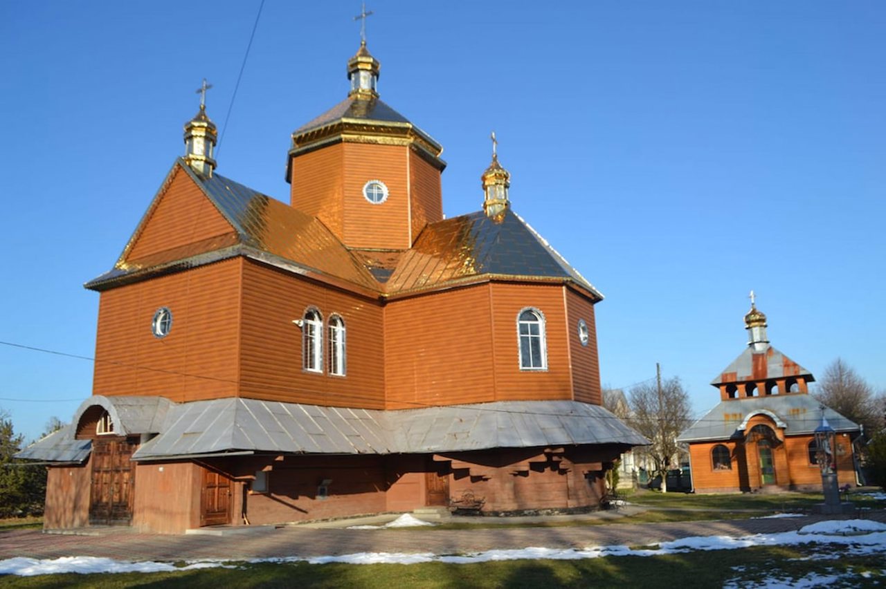 The wooden church of Saint Nicholas with a bell tower in the village of Khotyn (now part of Kalush) was built in 1888 by craftsmen from the village of Perehynsk (Rozhnyativ district).