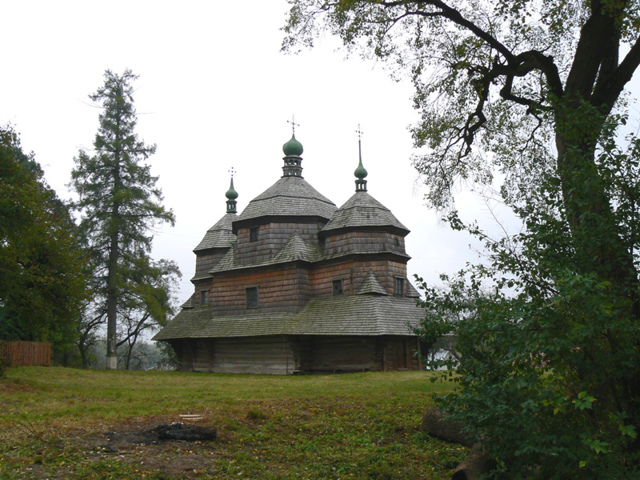 One of the best examples of the Galician school of folk architecture. The three-log three-headed temple has undergone several reconstructions, the last of which, carried out in 1965-1967 under the leadership of architect Ivan Mohytych, returned it to its original appearance.
