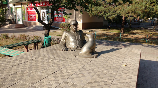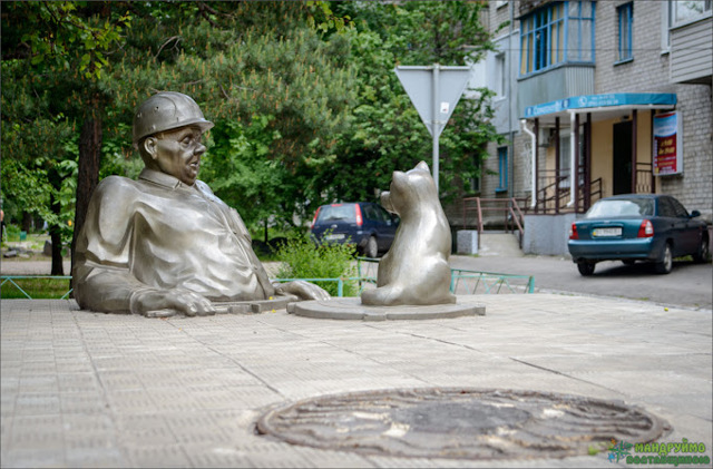 Скульптура сантехніка, що до пояса виглядає з каналізаційного люка, - одна з нових пам'яток Горішніх Плавнів.