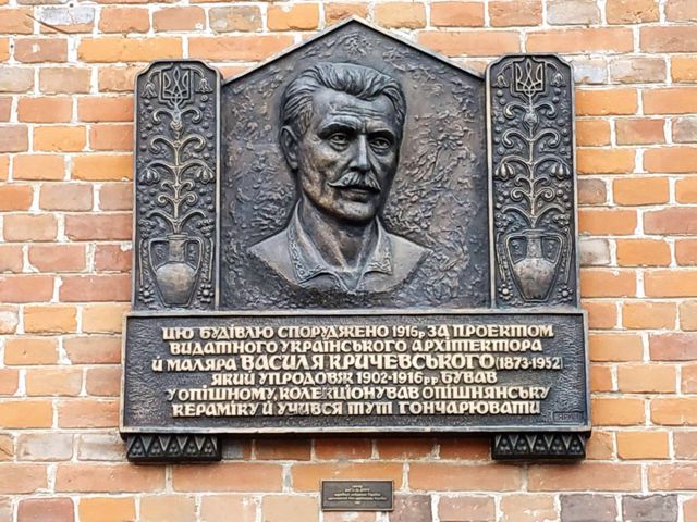 It was built in 1916 in the style of Ukrainian Art Nouveau according to the project of the outstanding architect and painter Vasyl Krychevskyi, the author of the Ukrainian Trident, with the participation of Yuriy Lebishchak, an instructor of pottery production, technologist-ceramist from Galicia.