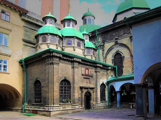 Built in 1572, the belfry (height 66 meters) is called the Kornyakt tower in honor of the Greek merchant and philanthropist who promoted Orthodoxy in Lviv.