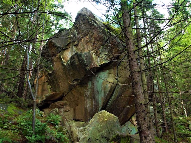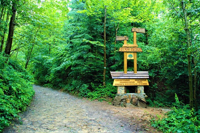 The tourist trail was created in 1902 in memory of the legendary people's avenger Oleksa Dovbush, who was active here in 1738-1745. Accumulations of sandstone blocks form bizarre forms with terraces and caves. According to legend, the treasures of Dovbush are hidden here.