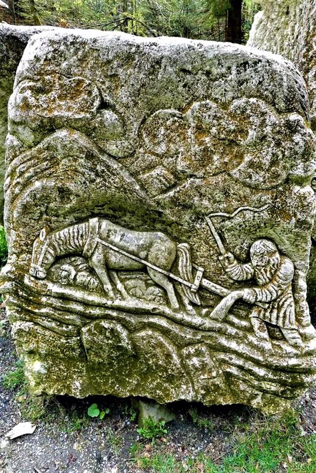 На стежці встановлені скульптурні композиції Дарія Грабаря.