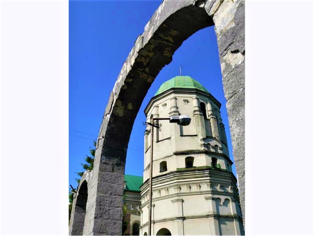 The main dominant feature of the building is the round defensive bell tower. The epitaph to Ivan Danylovych (1618) has been preserved.