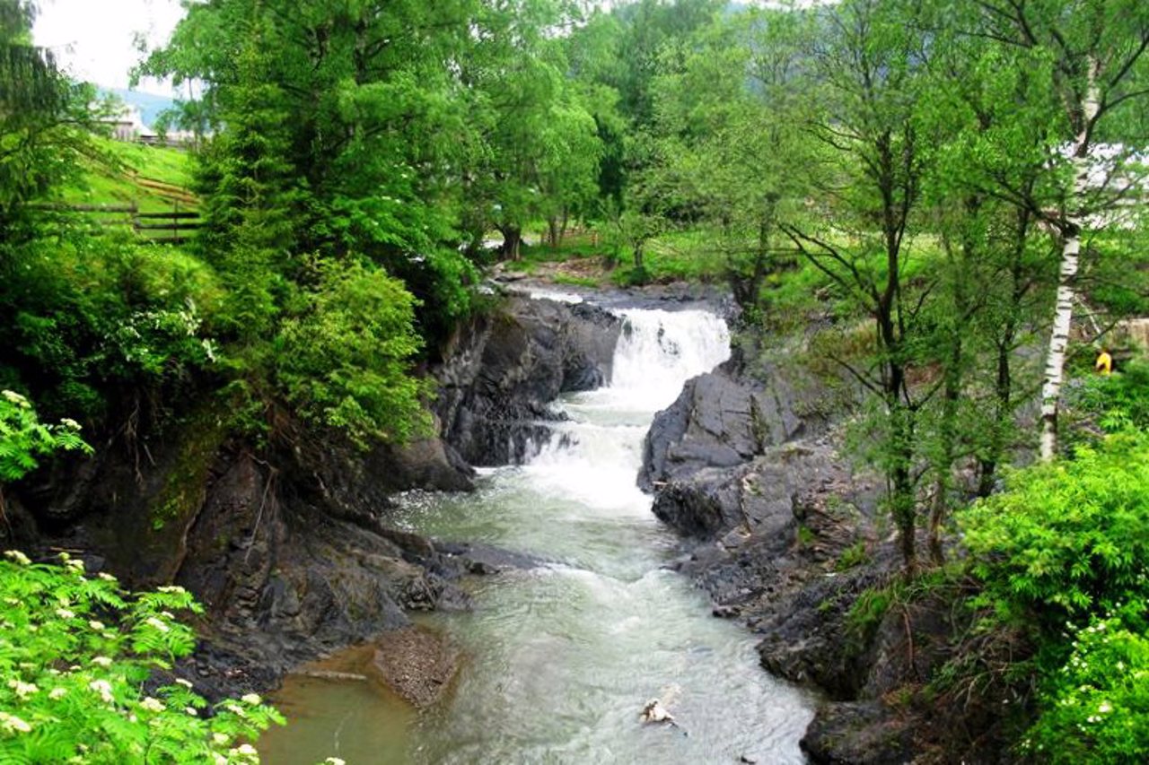 The "Suchavsky Huk" cascading waterfall is located on the Suchava River near the center of Shepit village.