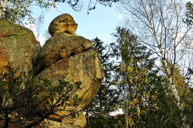 The "Ternoshorska Lada" rock in the Ternoshory tract north of the village of Bukovets, on the outskirts of the village of Snidavka, is better known as "Dovbush's Head".