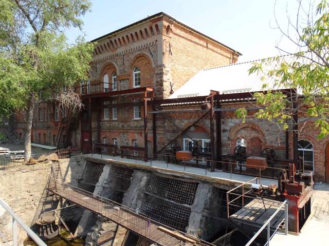 The five-story building resembles a medieval castle. Previously, up to 3,000 poods of flour per day were milled here, and in Soviet times the mill was converted into a hydroelectric power station.