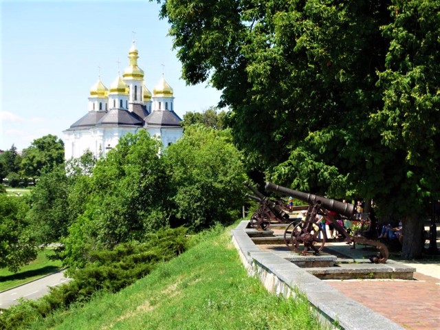 After the liquidation of the Chernihiv Fortress in the 19th century, the defensive rampart over the river was converted into a park area, and monuments to Taras Shevchenko and Pushkin were installed (dismantled in 2022 during the active de-Russification of Ukraine, which began as a result of the Russian invasion of Ukraine).