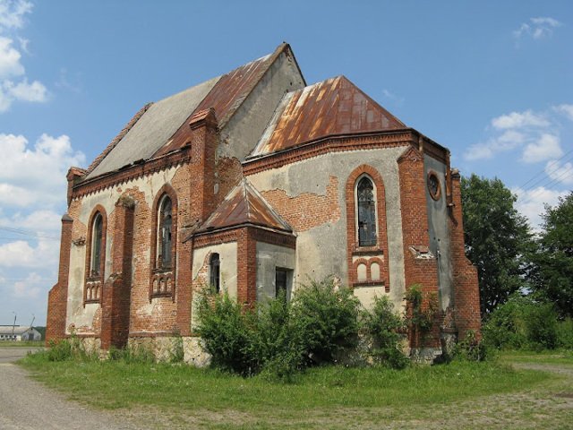 After the Second World War, the Soviet government used the church as a warehouse, dividing the premises into two floors. Today, the church remains inactive and is in a deplorable state. Nearby is an old Polish cemetery.