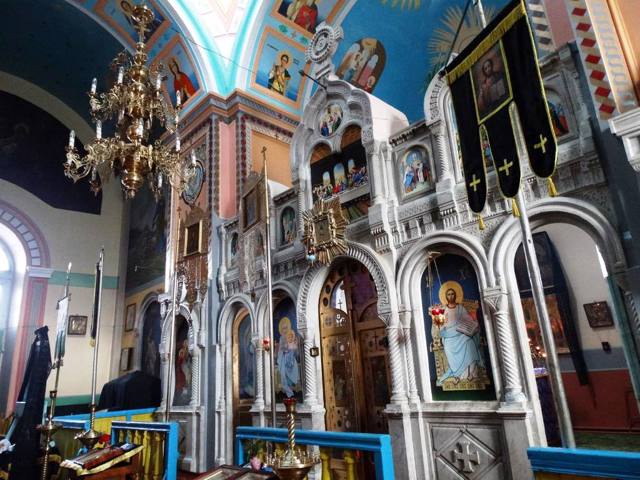 A carved iconostasis made of Carrara marble, similar to the one in Tereshchenko's ancestral temple in Hlukhiv, has been preserved.