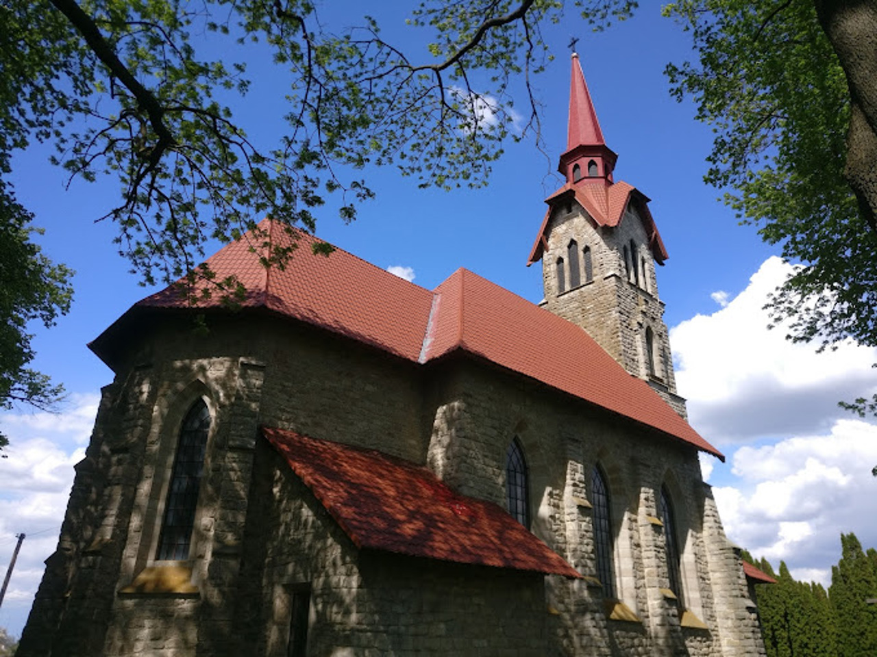Храм у стилі неоготики має високу гостроверху дзвіницю, яка домінує над навколишнім пейзажем.