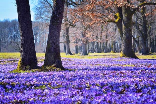 У березні на території дендропарку "Березинка" масово цвіте шафран Гейфеля (крокуси).