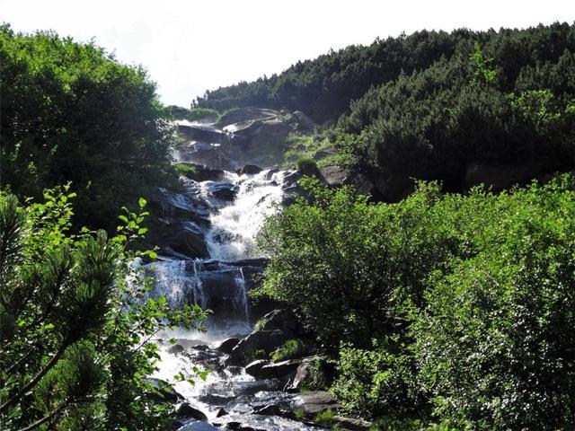The Prutsky (Hoverlyansky) Waterfall is located near the source of the Prut River between the spurs of the Hoverla and Breskul mountains (the Chornohora massif of the Ukrainian Carpathians).