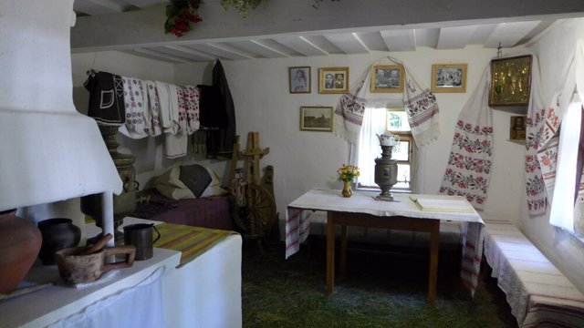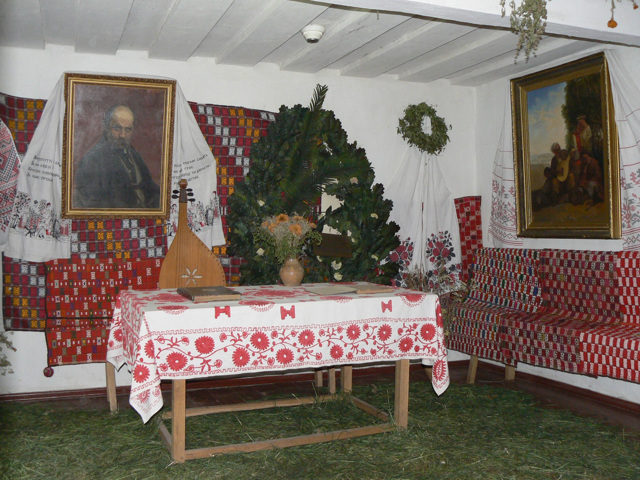 The house was dismantled in the 1930s, during the construction of a memorial on Tarasova Hill, but was restored in 1991. The museum exposition presents a copy of a portrait of Shevchenko donated to the museum by artist Illya Repin, a copy of a towel embroidered for the museum by Lesya Ukrayinka, an icon depicting Shevchenko in the image of a saint.