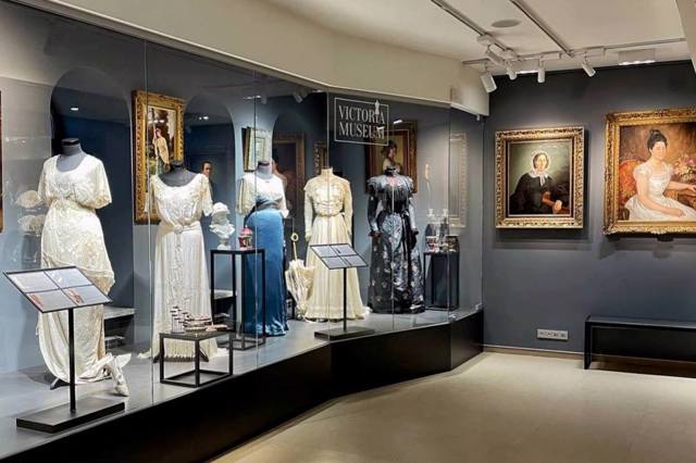 Серед унікальних експонатів Victoria Museum – єдина в Україні сукня від Будинку моди Чарльза Уорта початку XX століття. Також представлена колекція віял XVIII-XX століть.