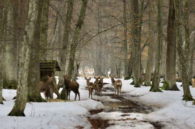 But the main attraction of the park is the opportunity to see large herds of wild animals up close. The best conditions for this are in winter, when the animals approach the feeders located along the roads, and the green mass of the undergrowth does not interfere with observations.
