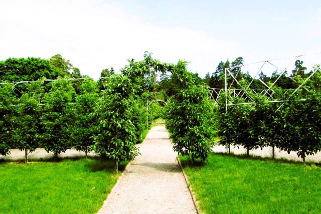 Currently, the Wall Garden has completely restored the layout of the ancient garden: 8 blocks, four of which are central and four are wall-mounted. The central blocks are planted with apple trees of different ripening periods, pears, plums, apricots, cherry plums, sweet cherries, and peaches. The wall blocks are planted with actinidia, collection grape varieties (30 varieties), dogwood, garden strawberries, jujube, and persimmon. Currently, 2,200 fruit trees of Ukrainian and foreign selection are grown here, which combine more than 300 varieties.