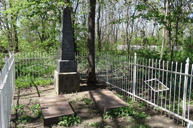The grave of playwright, actor, director and theater figure Ivan Karpenko-Kary (Tobilevych) is located in the cemetery of the village of Korliuhivka near the Tobilevych family estate "Khutir Nadiya".