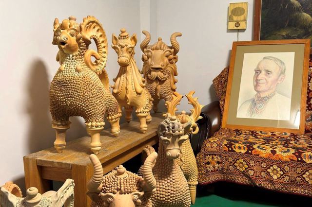 An exhibition using multimedia technologies has been created in the Vasyl Omelianenko Museum-Estate, which presents traditional Opishnia clay zoomorphic dishes and sculptures of the artist. There is a wide array of written and audiovisual ceramological sources about his life and work: documents, publications, photographs, videos, etc. The personal belongings of the master have become part of the exhibition.