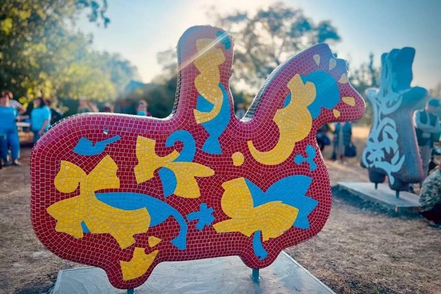 The territory of the art residence in Kuzemyn presents the works of many contemporary Ukrainian artists and sculptors. The installations "Childhood of Icarus" (Oleh Kalashnyk), "Apple Rescue" (Anna Ivanova), "Shodynnyk" (Tetiana Zorkina), "Reincarnation" (Oksana Solop), "Hosts" (Marharyta Zhurunova) and others attract attention. In 2024, the art space was replenished with sculptures from the "Invincible Sun" project ...