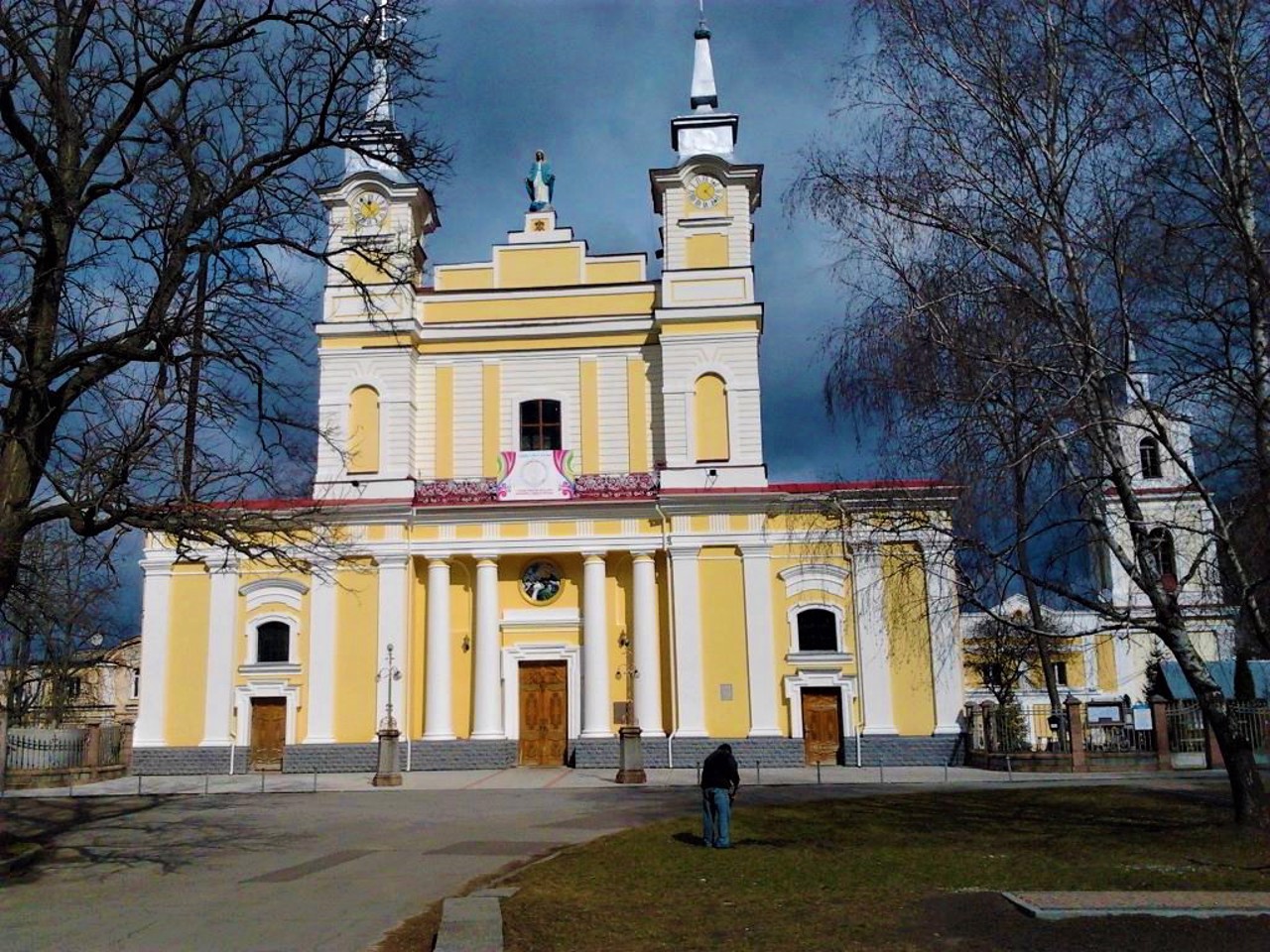The church was built in the 18th century on Zhytomyr's Castle Square on the initiative of Bishop Samiylo Ozhyha, and was reconstructed in the 19th century using classicism techniques. The thickness of the brick walls reaches 2 meters. The facade is divided into two tiers, the house is topped by towers with sharp spiers. One of the pylons of the building is decorated with a bas-relief created by the famous pianist and composer Yuliush Zarembskyi.