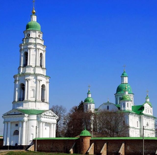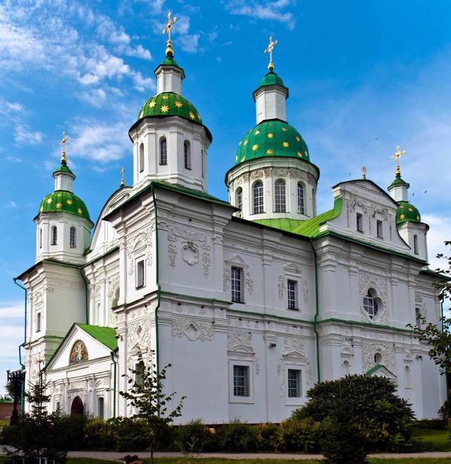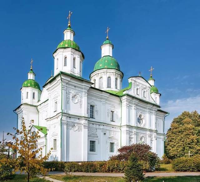 In 1684-1692, on the site of the first wooden church, at the expense of hetmans Ivan Samoylovych and Ivan Mazepa, the stone Savior-Transfiguration Cathedral was built (architect Johann-Baptist Sauer).