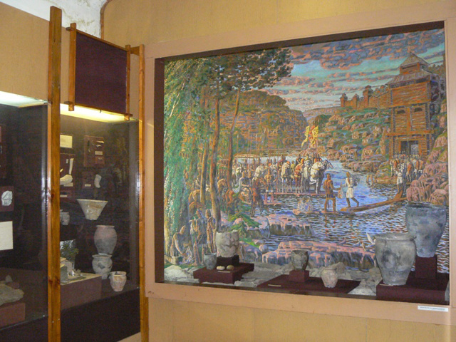 A special place in the exhibition is occupied by the canvas-diorama "Princess Olha near the walls of ancient Iskorosten" (artist Oleksandr Turansky, 1982), which recreates the picture of the arrival of the widowed princess of Kyiv to the walls of the rebellious city.