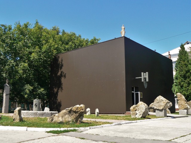 The dark constructivist building of cubic shape is located on Posadova Hill, on the site of the ancient settlement of Trepol. According to architect Anatoliy Ihnashchenko, the chest building symbolizes the wealth of Ukraine, and located around the stone - a piece of land.
