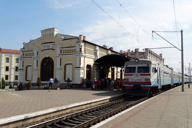 Будівля Козятинського вокзалу у вигляді білого пароплава розташована островом, який з обох боків "омивають" рейкові колії.